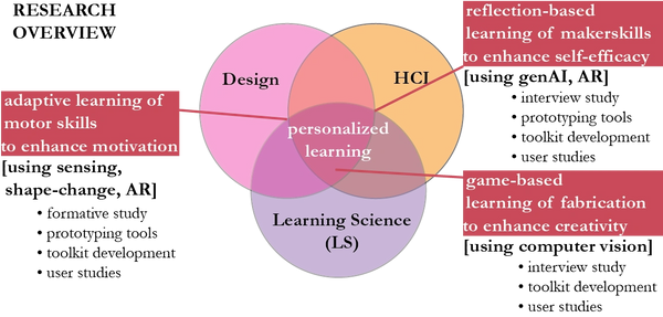 I fulfill this vision through my research at the intersection of Human-Computer Interaction (HCI) and Learning Science (LS). I combine HCI principles of tool design with LS frameworks to personalize the learning of physical skills by enhancing motivation, creativity, and self-reflection.